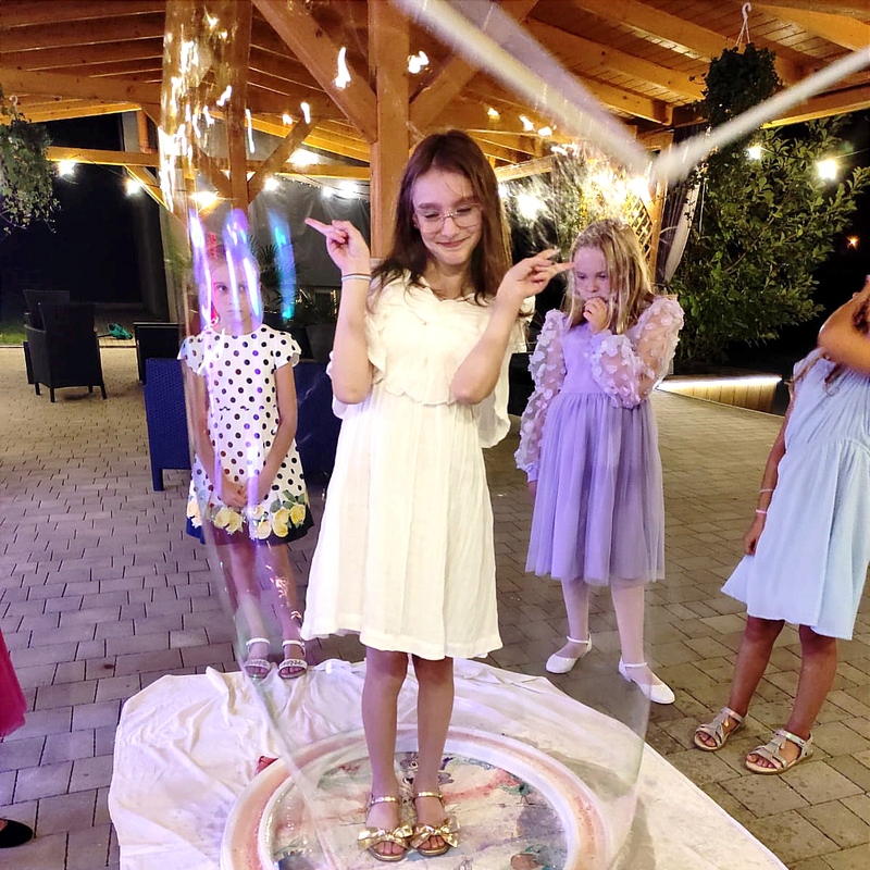 Tematyczne przyjęcie urodzinowe dla dziewczynek, którego motywem głównym są zabawy do muzyki, układy choreograficzne, przebieranki i stylizacja włosów. Idealny sposób na sprostanie oczekiwaniom dziewczynek powyżej 10 roku życia, które często uważają się już za "dorosłych" i klasyczne zabawy animacyjne wydają im się zbyt dziecinne. Nasze dziewczęce party organizujemy w sali zabaw (możliwość zarezerwowania sali zabaw na wyłączność) lub w domu czy ogrodzie. Atrakcje typu karaoke, pokazy mody, disco-party czy zamykanie w gigantycznej bańce mydlanej, z pewnością przypadną JEJ do gustu:)