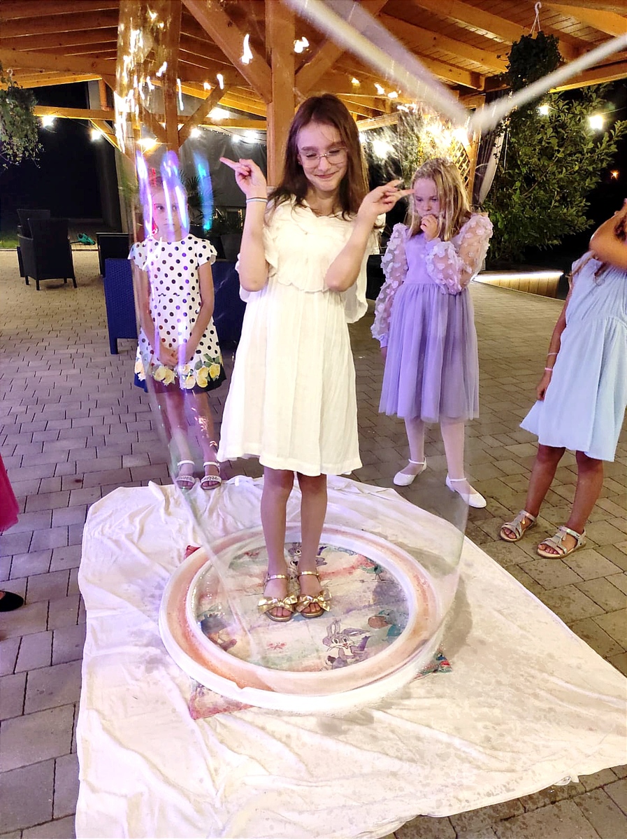 Tematyczne przyjęcie urodzinowe dla dziewczynek, którego motywem głównym są zabawy do muzyki, układy choreograficzne, przebieranki i stylizacja włosów. Idealny sposób na sprostanie oczekiwaniom dziewczynek powyżej 10 roku życia, które często uważają się już za "dorosłych" i klasyczne zabawy animacyjne wydają im się zbyt dziecinne. Nasze dziewczęce party organizujemy w sali zabaw (możliwość zarezerwowania sali zabaw na wyłączność) lub w domu czy ogrodzie. Atrakcje typu karaoke, pokazy mody, disco-party czy zamykanie w gigantycznej bańce mydlanej, z pewnością przypadną JEJ do gustu:)