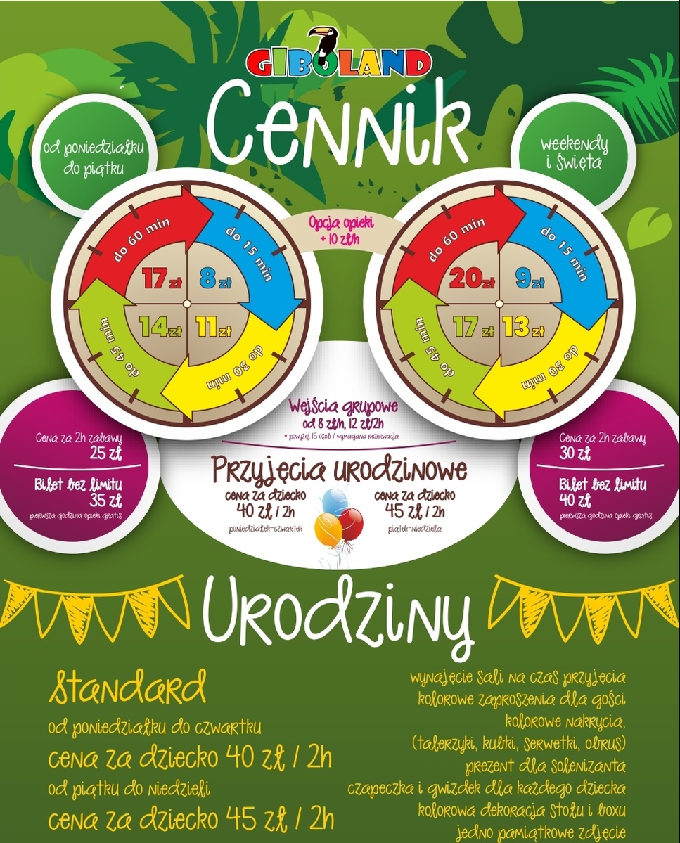 Sala zabaw Giboland organizuje pełne ciekawych atrakcji "imprezy tylko dla nieletnich" :) Sezon imprezowy rozpoczyna dyniowe party nawiązujące do halloween. Impreza nie straszy lecz bawi i daje sposobność do zabawy w super kostiumach. Kolejną imprezą są andrzejki dla dzieci, czyli tradycyjne wróżby i zabawa przy muzyce. W grudniu swoje biuro w Gibolandzie odwiedza Mikołaj, a rok kończy SYLWESTER TYLKO DLA NIELETNICH :)